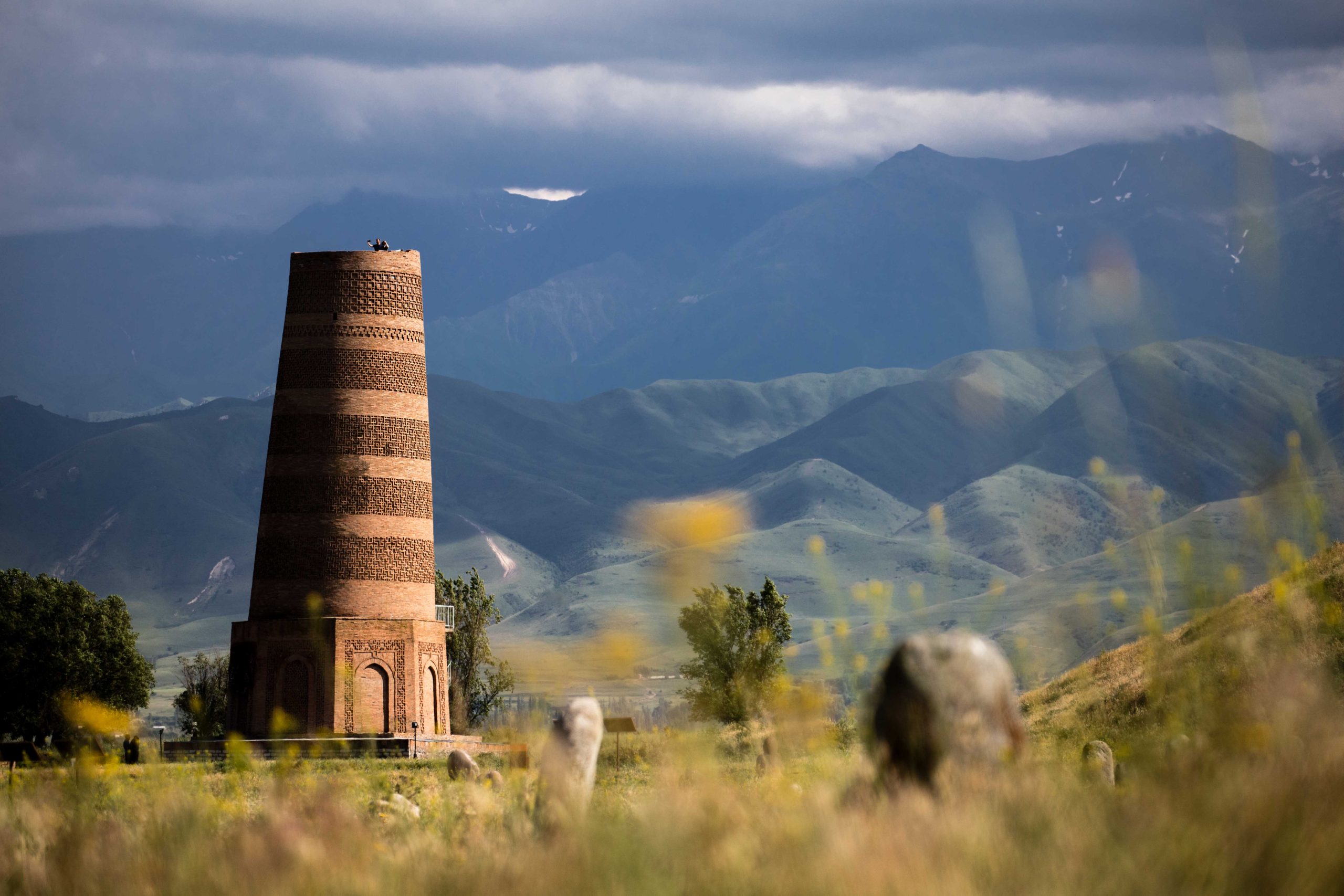 Day 2: Sunrise at Burana Tower, morning orientation, street photography of Bishkek mosaics, sunset at Ak Tash panorama.